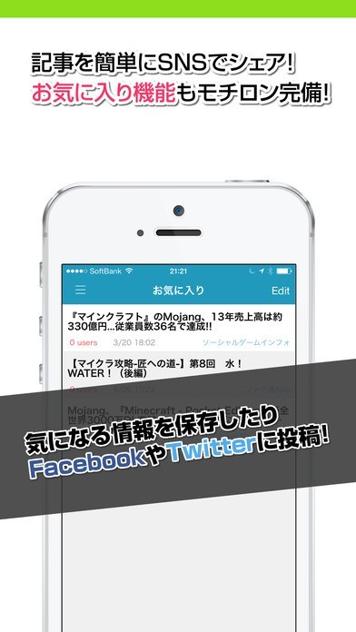 「攻略ニュースまとめ速報 for マイクラ(minecraft)」は、マイクラ(minecraft)の最新のニュースなどの情報が得ることが出来て、イベントの情報なども入手することも出来ます。さらには、「攻略ニュースまとめ速報 for マイクラ(minecraft)」では、ゲームについての攻略情報や裏技などの情報も得ることも可能です。また、お気に入り機能がついていますし、人気記事の一覧もチェックすることが可能で、時間がない場合でも重要情報を確認出来ます。