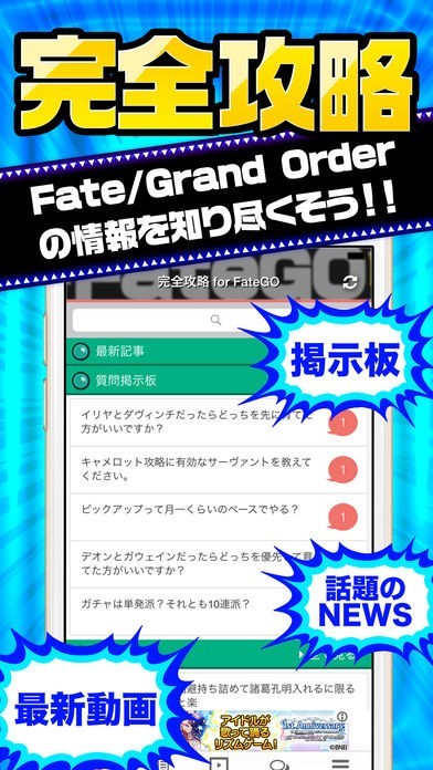 あの大ヒットゲームFate Grand Orderの攻略情報を入手できるアプリです。話題の最新ニュースから効率の良い攻略方法まで一纏めに閲覧できます。情報を保存してオフラインで見ることも可能です。