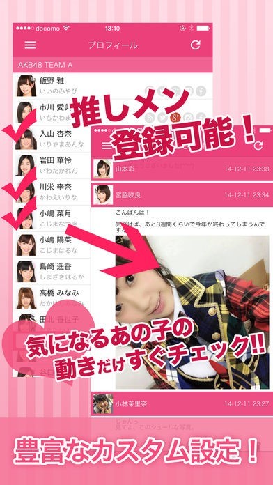 48グループの関連情報をいち早くチェック!お目当ての推しメンの情報だけチェックすることも可能