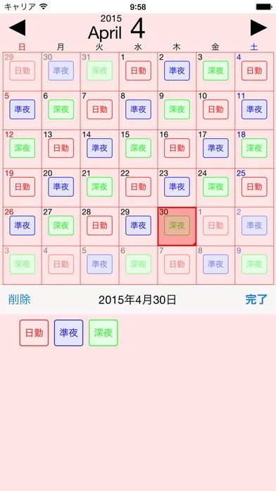 App Storeより引用iPhone標準カレンダーの予定も同時に表示できる、シフト勤務している方向けのシンプルなカレンダーアプリです。