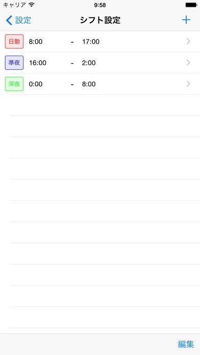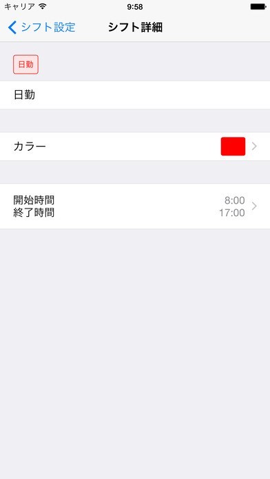 ・シフト名、表示色、勤務時間を設定できるシフトパターン。