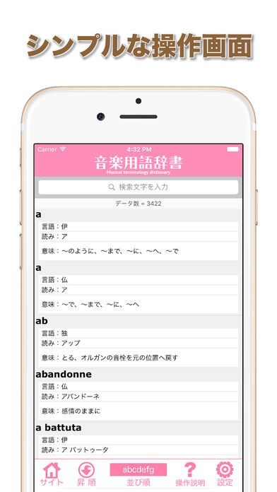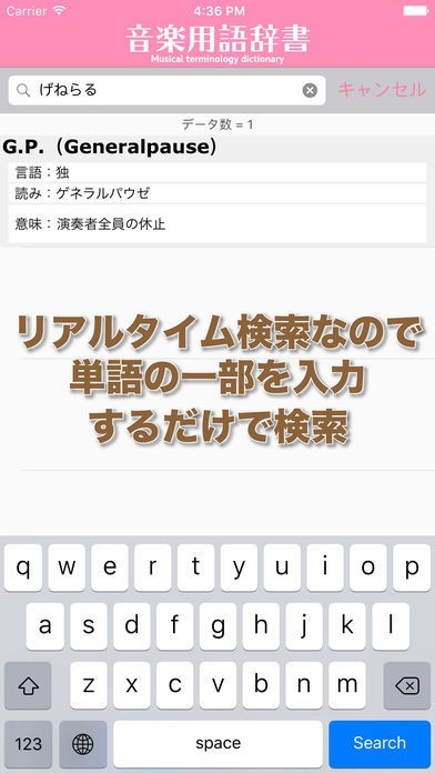 音楽の授業やレッスンなどでわからない用語があれば調べると簡単に用語が出てきます。説明文も簡潔に記載されているので初心者にはかなり使いやすい仕様になっています。通勤通学で用語の勉強も出来ます。