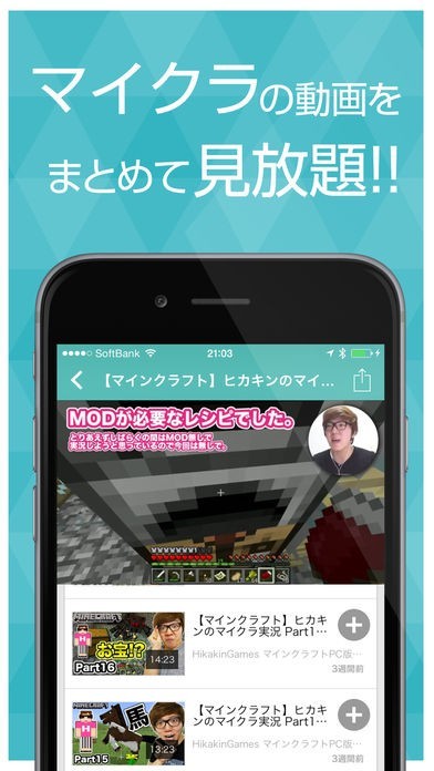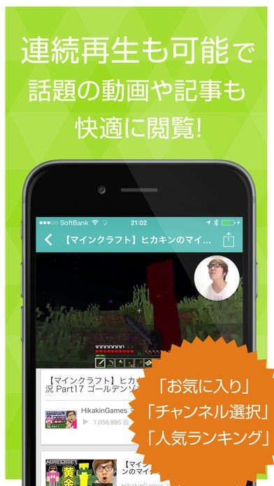 App Storeより引用マインクラフト(マイクラ)のゲーム実況動画をまとめて連続再生できるアプリが登場!