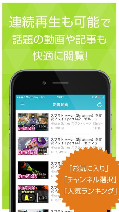 App Storeより引用スプラトゥーン(Splatoon)のゲーム実況動画をまとめて連続再生できるアプリが登場!