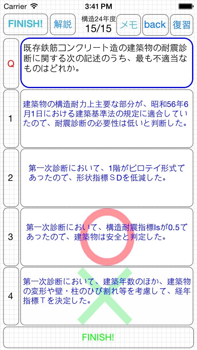 気になる問題や分からなかった問題はメモボタンをタップすることで保存しておくことができます。後でまとめてチェックできるので、効率的に解けない問題を減らしていくことが可能です。