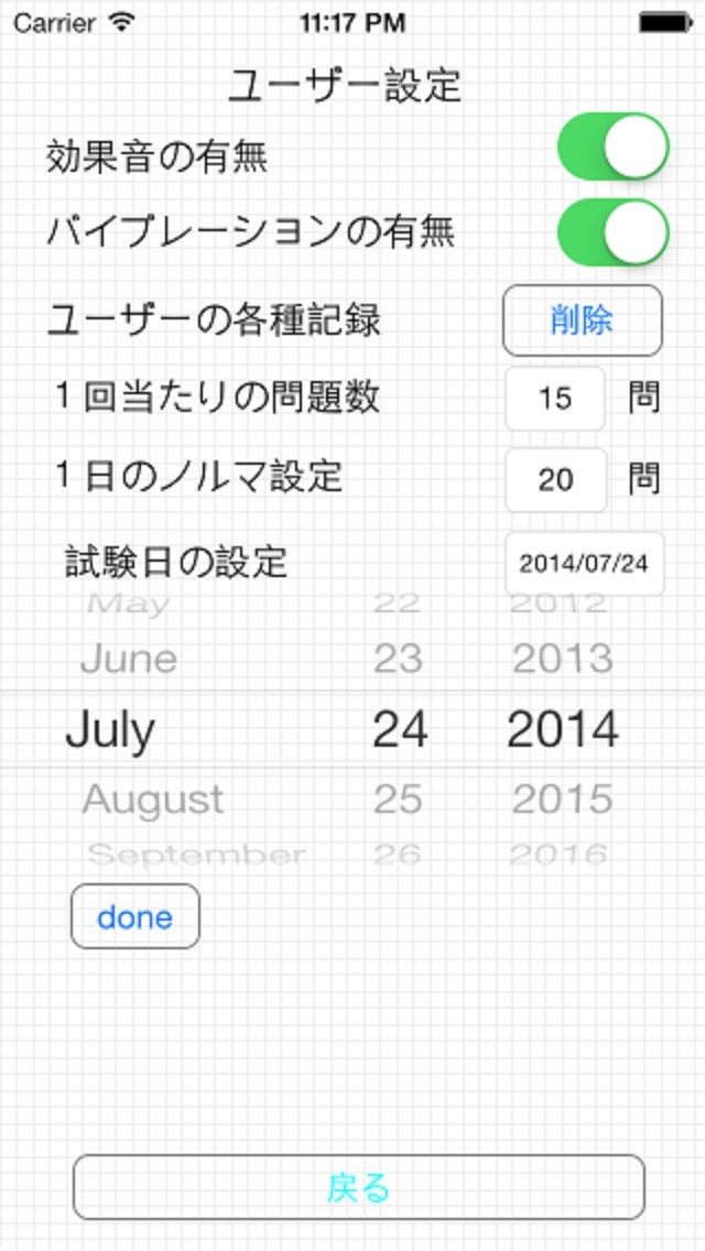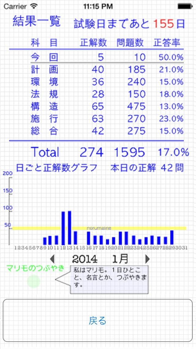 復習ボタンを使うと全ての問題を解き終わっても、間違った問題が出題され続けるので、全問正解するまで粘り強く問題にチャレンジすることができます。1日のノルマの設定も可能なので自分に厳しくできます。