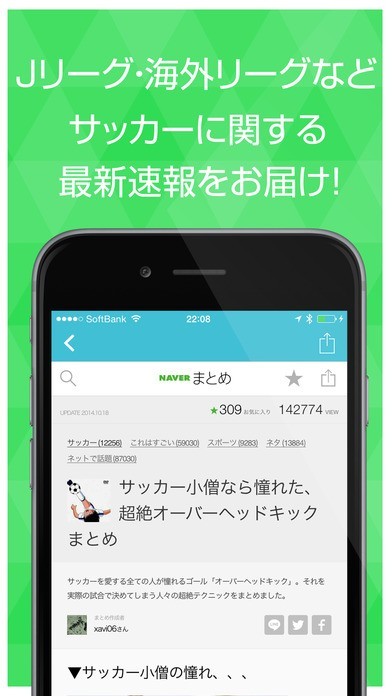 Jリーグや海外リーグの速報、順位ランキングからWカップ日本代表の最新ニュースまで、サッカーに関する情報をいち早く得られるアプリです。過去の人気速報や記事をよみかえすことができ忙しい方もサッカーの情報通になれます。
