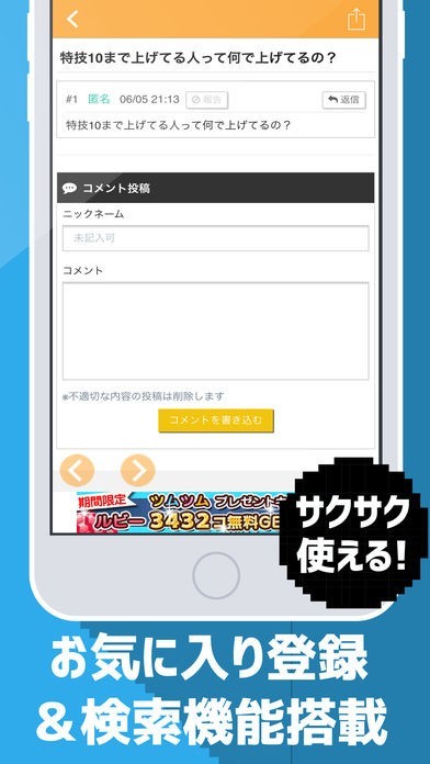 気に入った記事などをお気に入り登録する事が出来ます。また、気になる事は検索機能でいつでも探す事が出来るので使い勝手も良く、プレイユーザーに嬉しい機能が満載のアプリです。