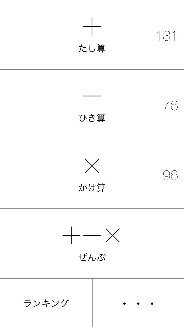 App Storeより引用一けたのたし算、ひき算、かけ算のれんしゅうをしましょう。