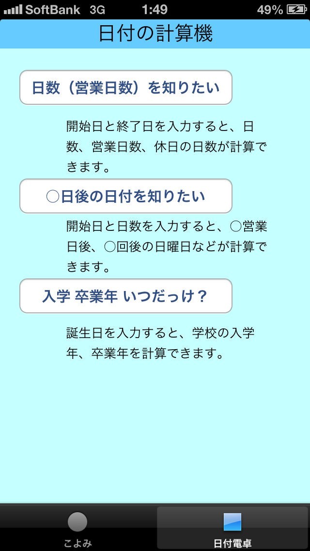 カレンダーで確認が必要だった日数や卒業年度を簡単計算