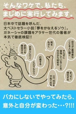 App Storeより引用■ あの大ヒット「夢を叶えるゾウ」の内容を、馬鹿にしないでやってみたら、意外と自分が変わったので驚いた?!