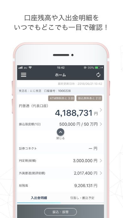 GMOあおぞらネット銀行のインターネットバンキングをスマートフォンから利用することも可能となっていて、残高照会や入出金明細の確認などが出来るようになっています。