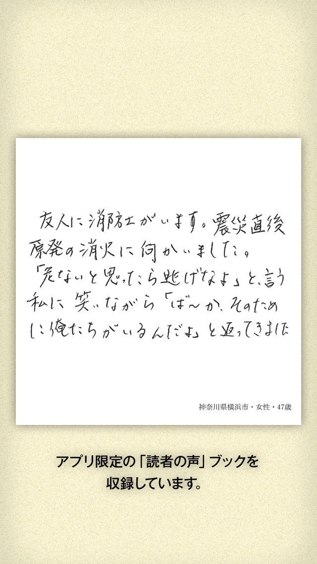 「PRAY FOR JAPAN 〜3.11 世界中が祈りはじめた日〜」は東日本大震災直後から今現在も届けられているエピソードや写真などをスマートフォンで閲覧することが出来るアプリとなっています。日本だけでなく、世界各国から届けられた励ましのメッセージなども確認することが出来るようになっていて、英語や中国語などにも対応しています。しおり機能を使用することで心に残ったメッセージやエピソードなどをブックマークしておくことが出来ます。