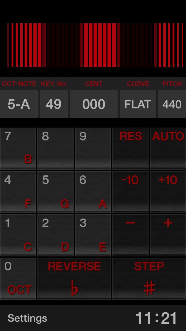 プロのピアニストも愛用しているピアノ調律に関する基本的な技術を習得した『PT-A1』 楽器の世界トップメーカYAMAHAの公式アプリとして有名で、ピアノ調律、測定分解、ピッチ、音階設定、調律カーブやおと名設定などあらゆる調整を行うことが可能です。 モードも「調律モード」「測定モード」「設定モード」と多数用意されているので都度、状態に合わせて使用することができます。