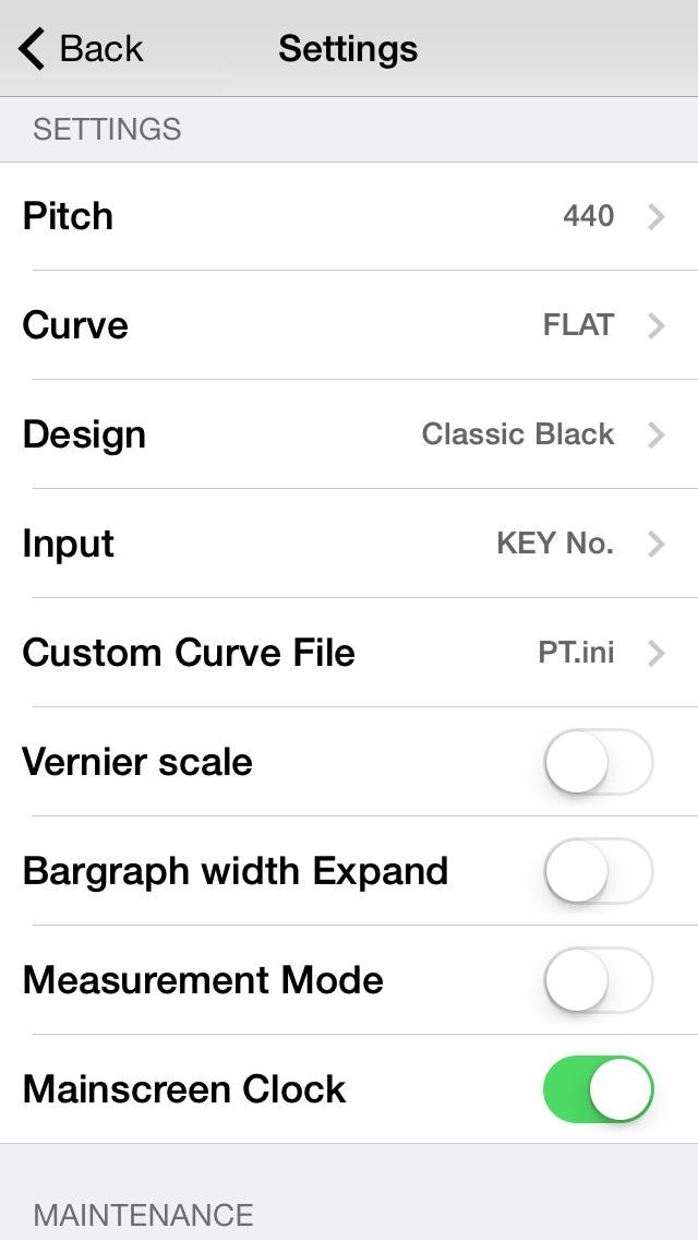 ヤマハ製チューナーの基本機能の中でも高い精度と操作性に定評のあった画面インターフェースを踏襲している
