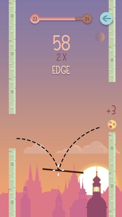 FlickBallは、黄色い顔の付いたボールを、画面に線を引いて家まで届けるゲームです。夕暮れの街並みの景色に温かみが感じられます。リラックスしながら脳トレができます。