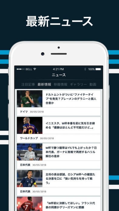 ブンデスリーガやプレミアリーグ等の情報が盛り沢山!ゴールシーンを動画で閲覧出来るスマホアプリ