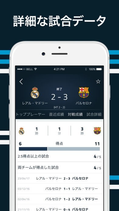 ゴールの瞬間や決定的な場面を動画でチェックしていけるので、試合の臨場感を味わながら結果を追っていく事が可能です。試合データやスタッツが細かく表示出来るのも利点です。
