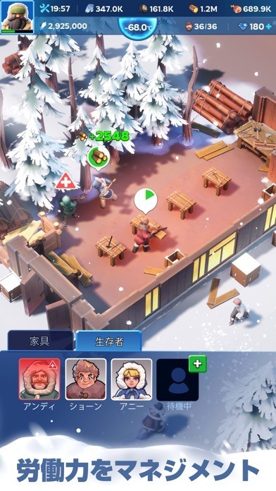 労働者、ハンター、コックなど、生存者たちの労働力をマネジメントしよう。生存者の健康状態と幸福指数を常にチェックすれば、効率的に働かせることができる。病気には気をつけ、すぐに治療しよう。