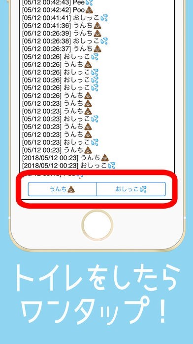 日々の「うんち」「おしっこ」をワンタップで記録できる便利なアプリです。