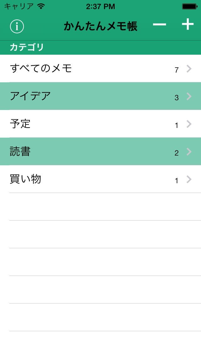 こういう「カテゴリ分け出来るシンプルなメモアプリ」ってなかなか無いんですよね。 今まで様々なメモアプリを使ってましたが、今ではこれだけです。 後は、カテゴリの並び方を変えられれば言う事はありません。