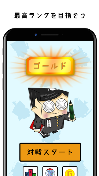 「ルーキー」から始まるランクはクイズに勝てばどんどんあがる。