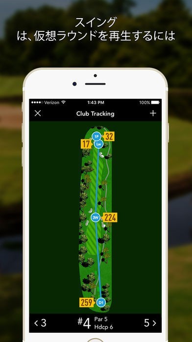 GPS機能とコースマップを活用して、ゴルフ場の各コース上で、自分の現在地からそのホールのグリーンまでの距離をリアルタイムで確認することができ、プレーの参考になります。