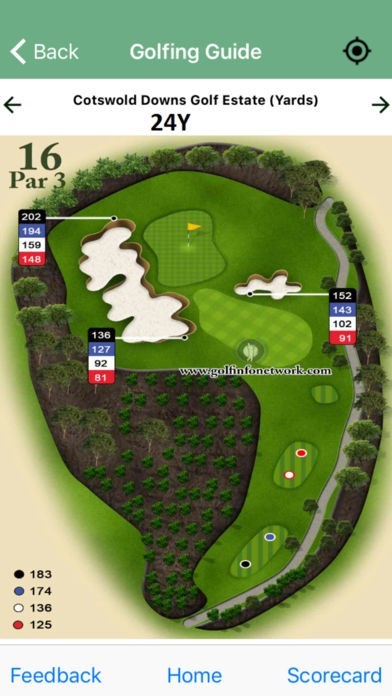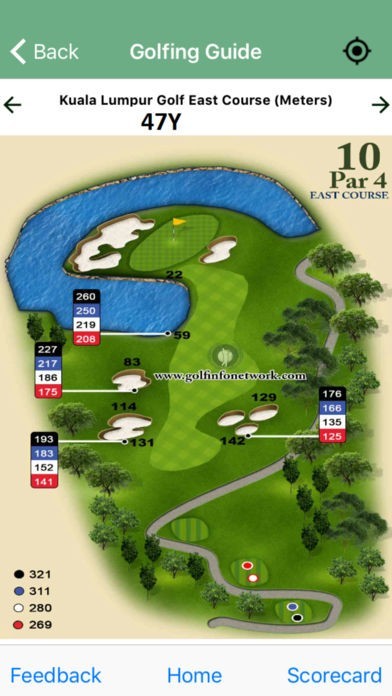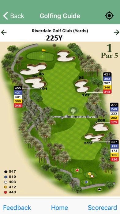 コースは視認性の高いイラストで表示されるので実際に眺めるよりもチェックしやすい形となっています。スタート位置からグリーンやハザード、バンカーが見えずらいコースにおいて役立つでしょう。