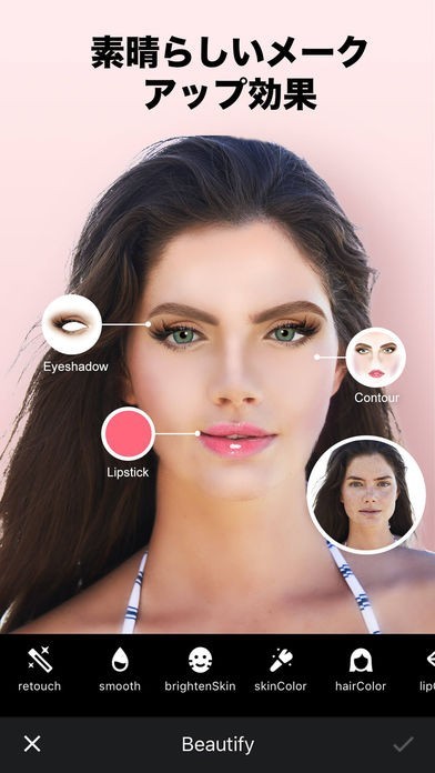 ビューティー機能搭載なので、目のサイズや肌の色も変化できる