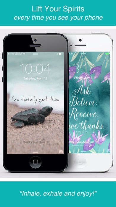 App Storeより引用Every Day Spirit is a collection of beautiful, original, hand-crafted wallpapers created to make your iPhone and iPad look amazing AND inspire you with positive and messages of love, joy and peace.
