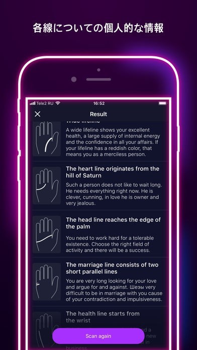 「手相占い・スキャナー」アプリがあれば占いに行かなくても自宅で手相を占うことができます。手のひらの写真を撮って、自分の線と近いものを選ぶだけだから誰でも簡単に占うことができます。