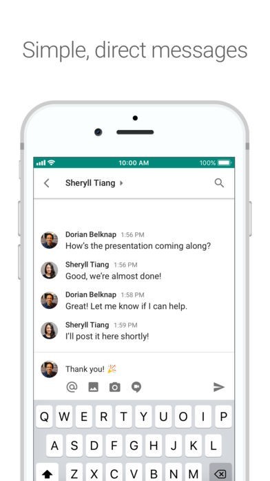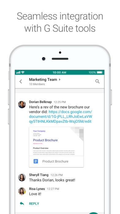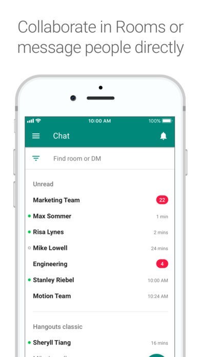 「Hangouts Chat」は、グループ向けのチャット機能を利用することができるアプリになります。ビジネス向けのセキュリティ機能やデータ損失防止機能を備えているので、プロジェクトメンバーなどと安心して情報の共有をすることができるようになっているほか、ダイレクトメッセージも送信することが可能となります。