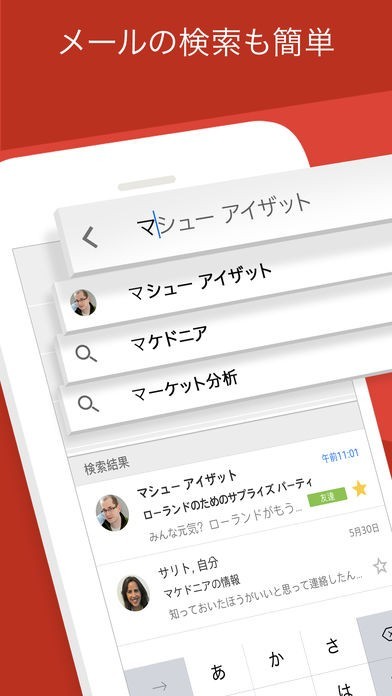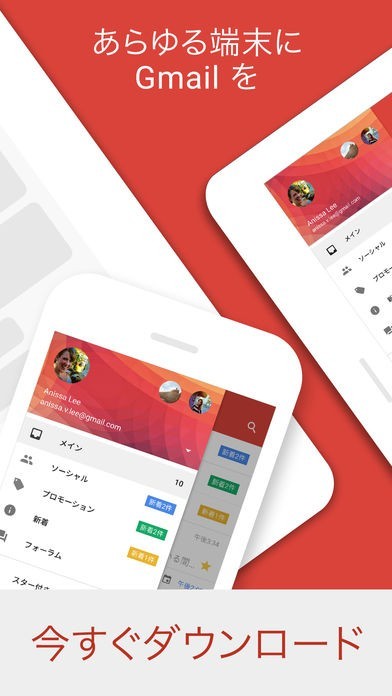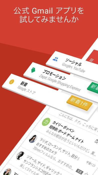 Gmail - 安全ですばやく整理しやすい Google - Eメールとは、様々な国の人とのメッセージを、いつでも簡単に交わせるサービスです。送信の消去や中身を詳しく調べたり出来る、便利な機能が沢山設けられている、魅力的なメールアプリです。写真やデータファイルを添付して、自由に送り届けられるので、日本だけでなく、世界中の人達からも愛され続けています。色んな国の方と即時に繋がれる為、プライベートだけでなく、ビジネス目的でも上手く活用出来ます。送り先を間違っても直ぐに取り消せるので、書き直したメッセージをもう1度送信する手間も上手に省けます。