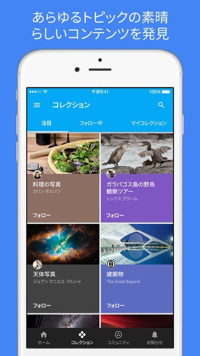 Google+のコミュニティ機能を活用すれば、自分の興味のあるテーマごとに集まったトピックをチェックすることができます。身の回りで自分と同じ趣味の友人がみつからなかったり、もっと趣味について語り合いたいと考えている場合に役立つアプリです。また、複数のトピックを集めて自分だけのコレクションを作ることができます。多趣味の場合でも複数のユーザーをフォローできるので安心です。写真を投稿することができるだけではなく、コメントを交換することもできます。ネット上で友人を作りたいと考えている場合には重宝します。ちょっとした短い動画投稿機能も便利です。
