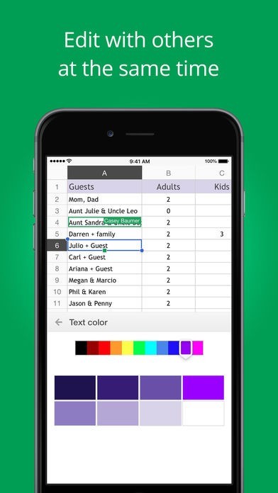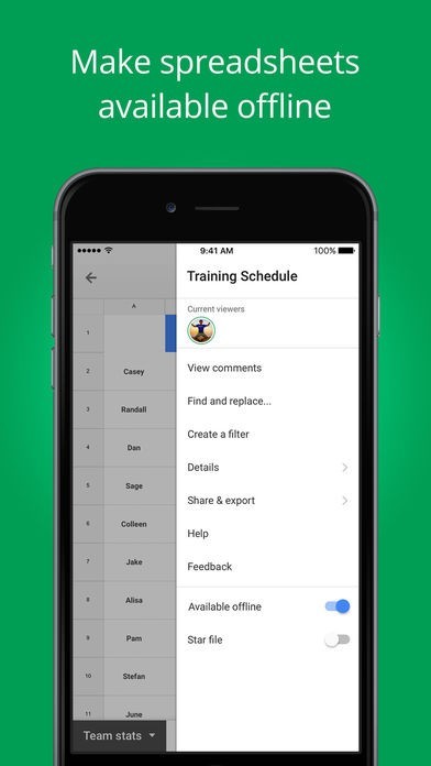 Google スプレッドシートをiPod・iPhone・iPadで使用できるようになる無料アプリです。Google公式アプリなので安心して使えます。別の端末からもスプレッドシートを編集できるようになり、他のユーザーと共有して作業することも可能です。パソコンが使えない状況でも時と場所を選ばずに作業できるようになります。 アプリ版でもパソコン版と同等の機能がありレイアウトも同じです。データは自動で保存されオフラインでも使用できます。