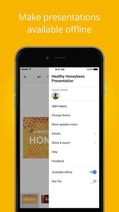 スマホでプレゼンテーション作成や編集が行え、複数ユーザーによるファイル共同編集が可能、スマホ1つでプレゼン作成が行える