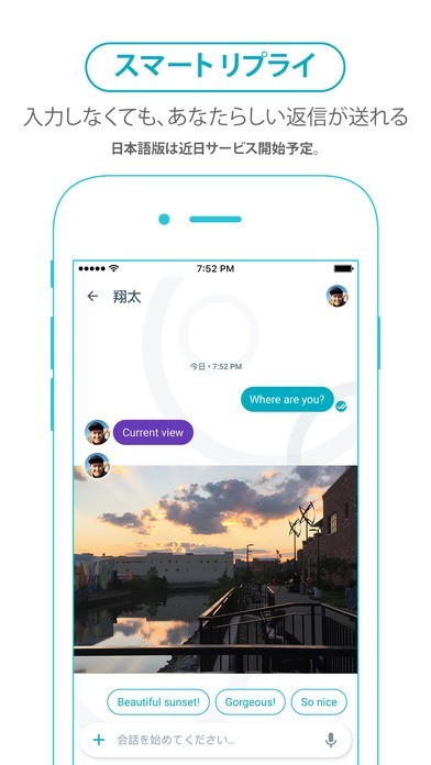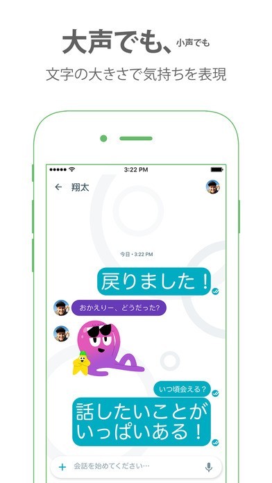 使いやすい機能を多数用意したメッセージツール「Google Allo」 テキストメッセージ機能を搭載しており、強調したいテキストはスワイプすることで大きさを変更できるようになっています。 可愛いステッカーも収録。メッセージの内容に合わせて利用すれば、友達との会話もさらに盛り上がることができるでしょう。 さらに便利なスマートリプライ機能も搭載。 いつもの返信スタイルや語調をツールが学習し、送信されてきたメッセージや写真に対して自動的に返信を返してくれます。