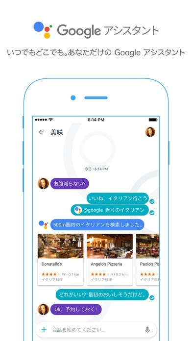 特定の人とすぐにコンタクトを取ることができるだけでなく、グループ(チャットルーム)を作ることで同時にたくさんの人とチャットをすることができます。 シークレットチャットという機能もあるのでその都度履歴を消したりしなくても人に知られずこっそりチャットすることも簡単にできます。 シークレットチャットはグループでも利用可能です。 文字だけでなく、音声、ビデオによる通話もできて、データ通信となるので通話料などはかかりません。 また、オリジナルスタンプや画像へのペイント、スワイプによる文字サイズの変更など色々な方法でコミュニケーションを取ることもできます。 更にGoogle公式アプリならではの機能として、Googleアシスタントがあります。 これは単にすぐにGoogle検索を行えるだけでなく、「近くのカフェはどこ?」と打てばAIが自動的に近くのカフェを調べて教えてくれたり、今日の天気を教えてくれたり様々な使い方ができます。