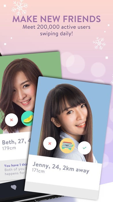 顔写真を左右にスワイプして相手を探す使いやすい操作性
