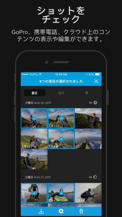GoProで撮影したものをスマートフォンに送ってくれて管理することができる