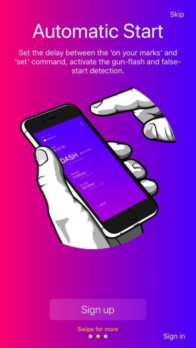 App Storeより引用Dash is an automatic starter's gun for track and field athletes, created by ex-international class sprinters. Featuring both manual and automatic mode, coaches and athletes alike can use this fun, stylish training tool to simulate a track umpire's start commands, starter's pistol, false starts* and reaction time*.