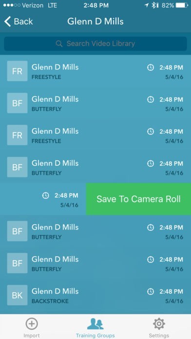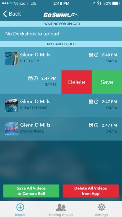 The app can save hours and hours of desk time for the coach, while providing huge benefits to the swimmers. With the app, each video clip can be immediately tagged to the swimmer and stroke, eliminating the need for the coach to upload, search, and sort the videos after practice.