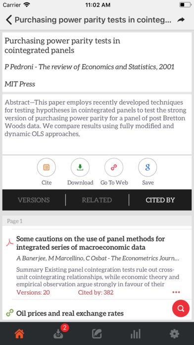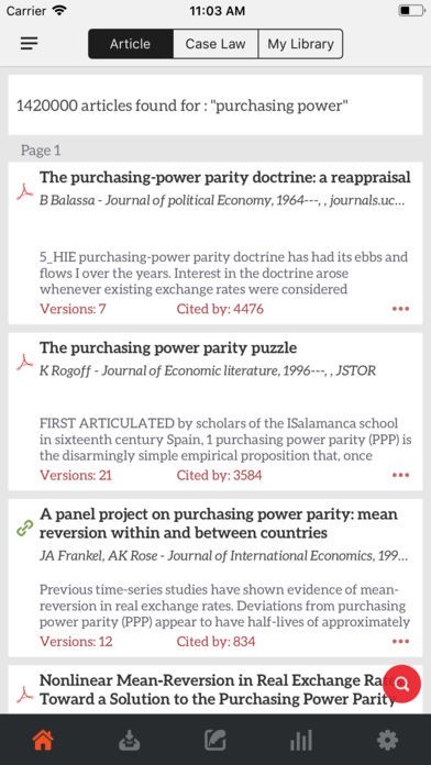 MyLibrary機能により、お気に入りの記事や論文をリストアップしておくことができます。読むときにもPDFなど様々なファイル形式のリーダーをサポートしているので他アプリ経由で閲覧する必要がなく便利です。