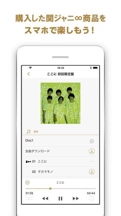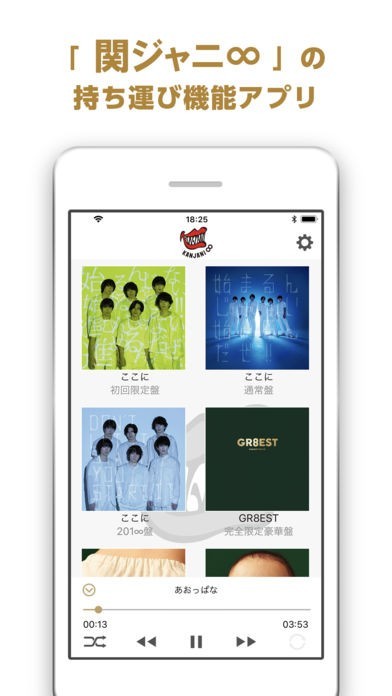 アプリ「GR8ESTアプリ」では、人気アイドルグループ「関ジャニ∞」のベストアルバム「GR8EST(グレイテスト)」を購入したユーザーであれば、CDを読み込まなくてもすべての音源をダウンロードしてスマートフォンで持ち運ぶことができます。すべての楽曲はダウンロードされるため、オフライン環境においても聞くことが可能です。
