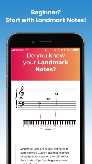 ランドマークノート - あなたのためにロック解除された4つのグループのドリルと3つすべてのピアノモードが含まれています:リアルピアノ、バーチャルピアノ、さらにはMIDI。