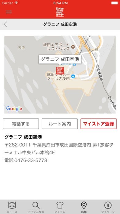 店舗案内機能が搭載されているので、graniphの全店舗の情報をチェックするだけでなく、行きたい店舗までルート案内をしてもらうことが可能なので迷わずに行くことができます。