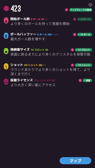 ボールを撃ち出していってブロックを破壊しながら進んで惑星の中心を目指すゲームですがショット数はラウンドによって制限があってさらにブロックも色んな状態の物があって考えてショットしないといけないので攻略のしがいがあるのが良いです。