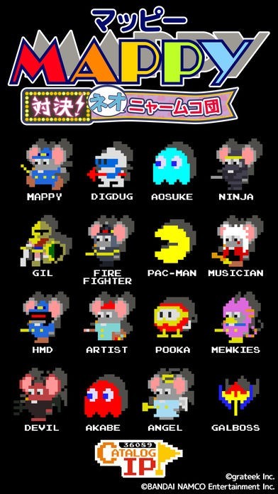 App Storeより引用永遠の名作、ネコとネズミのトランポリンアクション「マッピー」が、パワーアップして登場!