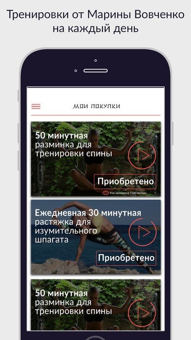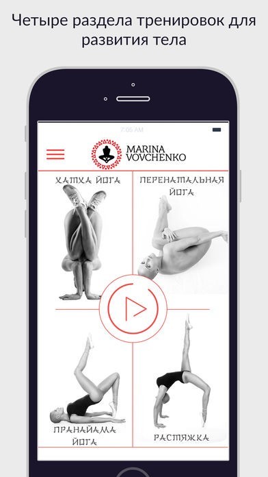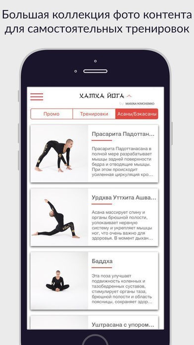 В приложении собраны профессиональные тренировки на тему йоги, силовых и кардио нагрузок. В своей практике Марина выделяет 4 основных направления физических нагрузок: хатха йога, пранайама йога, растяжка, силовые и кардио тренировки. Все обучающие уроки приложения направлены на то, что бы каждый человек смог создать еще более лучшую копию самого себя. Упражнения направлены на улучшение физической формы, развитие пластики, укрепление иммунитета и внутреннего состояния.
