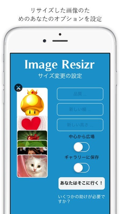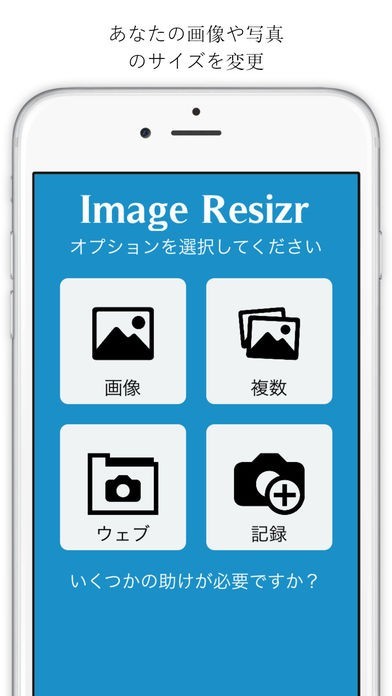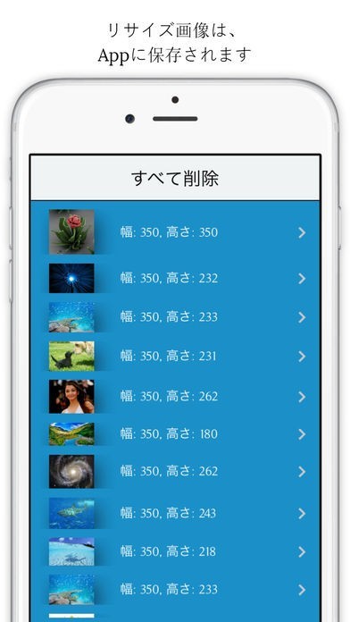 App Storeより引用"Image Resize" is an easy tool which allows you to change the size of your images. This tool offers you a lot of great functions to measure the size of your picture perfectly.